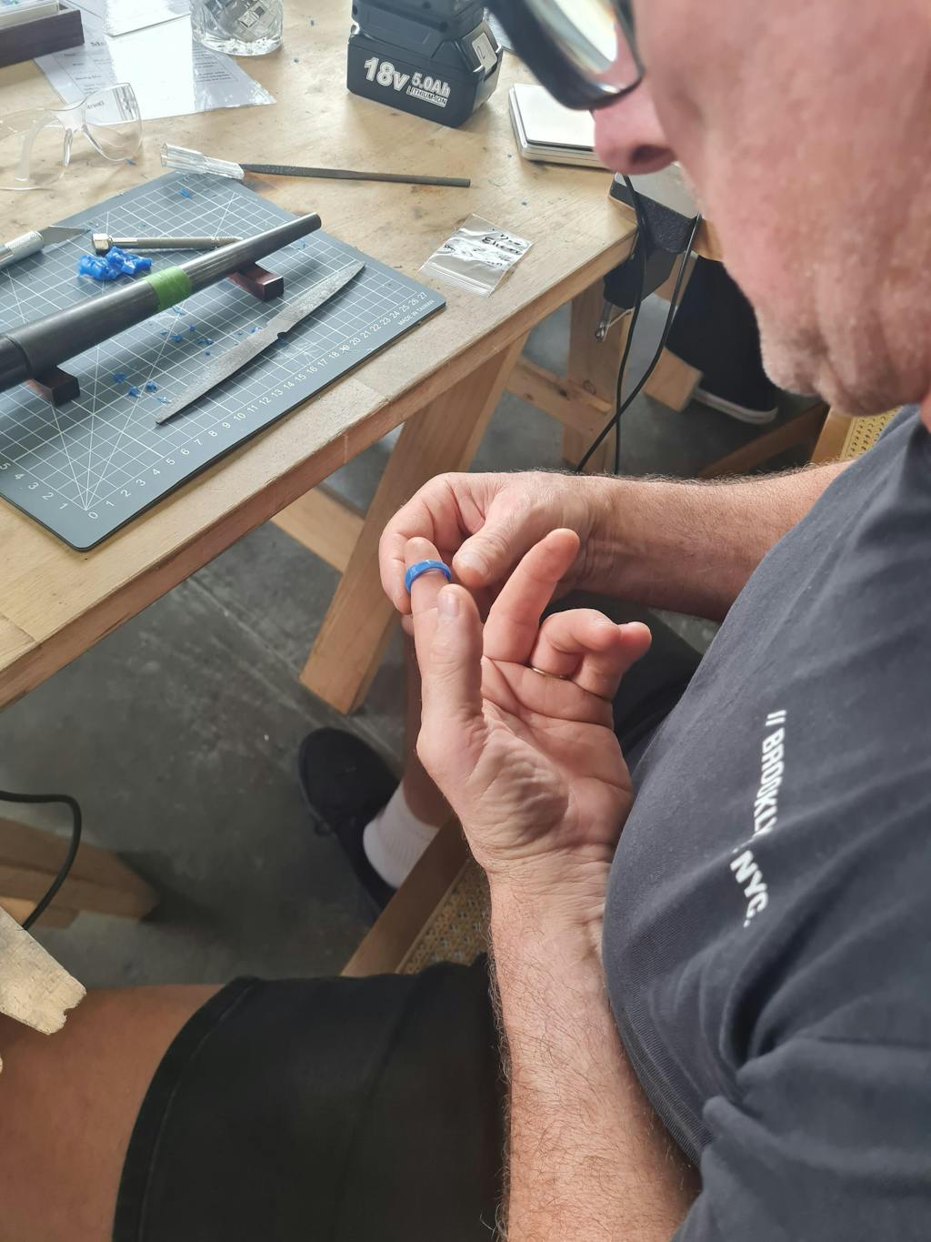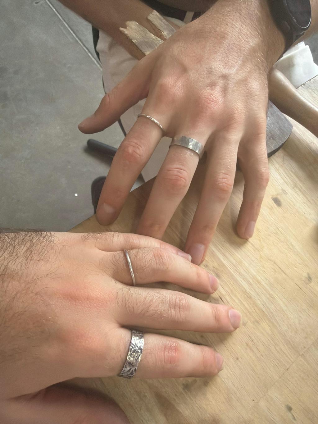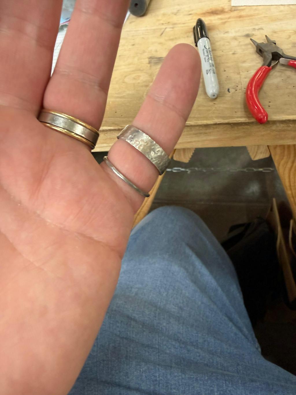 - First Ring: A stacker band completed step by step together - designed intentionally to ease you into the tools and techniques you’ll need for ringmaking. If you choose to upgrade your first ring to gold, the cost is $200 paid on the day of your class.