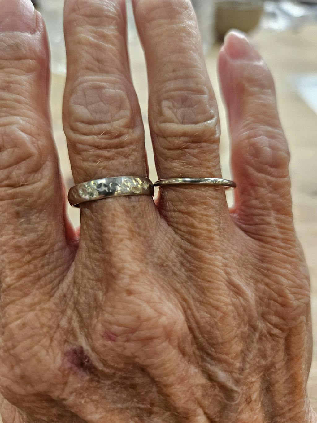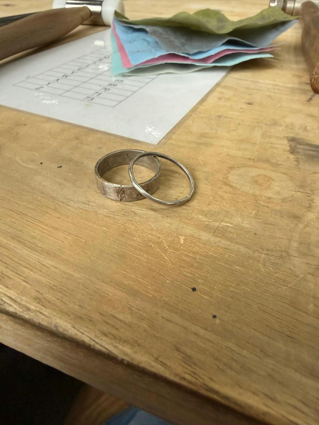 - Second Ring: A more advanced custom design - choose your own shape, texture and finish - and personalise your ring with lettering or numbers on the inside or outside. See some of our students' examples in our reviews below! If you choose to upgrade your second ring to gold, the material used in the second ring is paid for (by weight) on the day of your class depending on your selections.