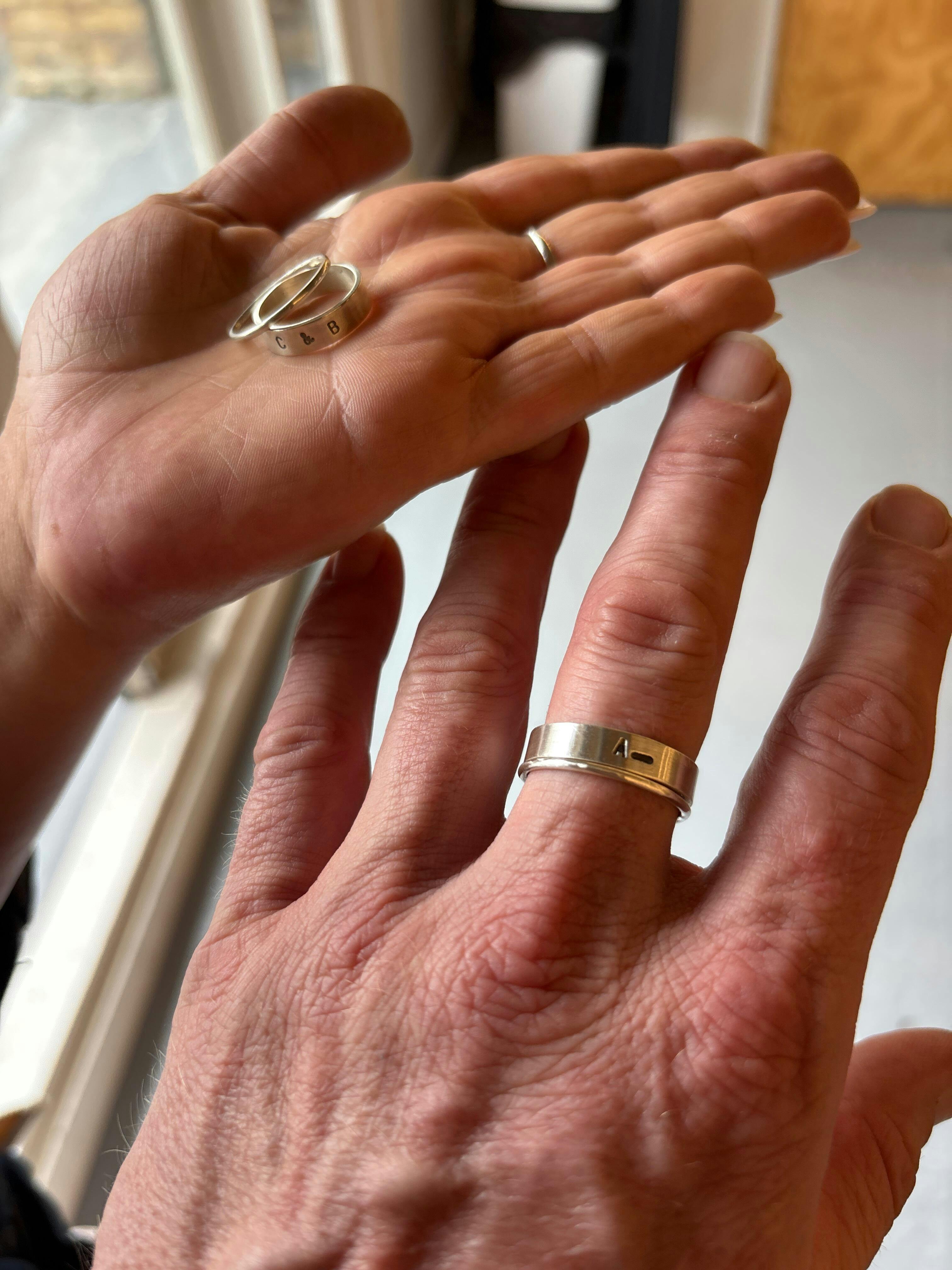 - Second Ring: A more advanced custom design - choose your own shape, texture and finish - and personalise your ring with lettering or numbers on the inside or outside. See some of our students' examples in our reviews below! If you’re purchasing a gold ticket, the cost of the first solid gold ring is included in the ticket price and the material used in the second ring is paid for (by weight) on the day of your class depending on your selections.