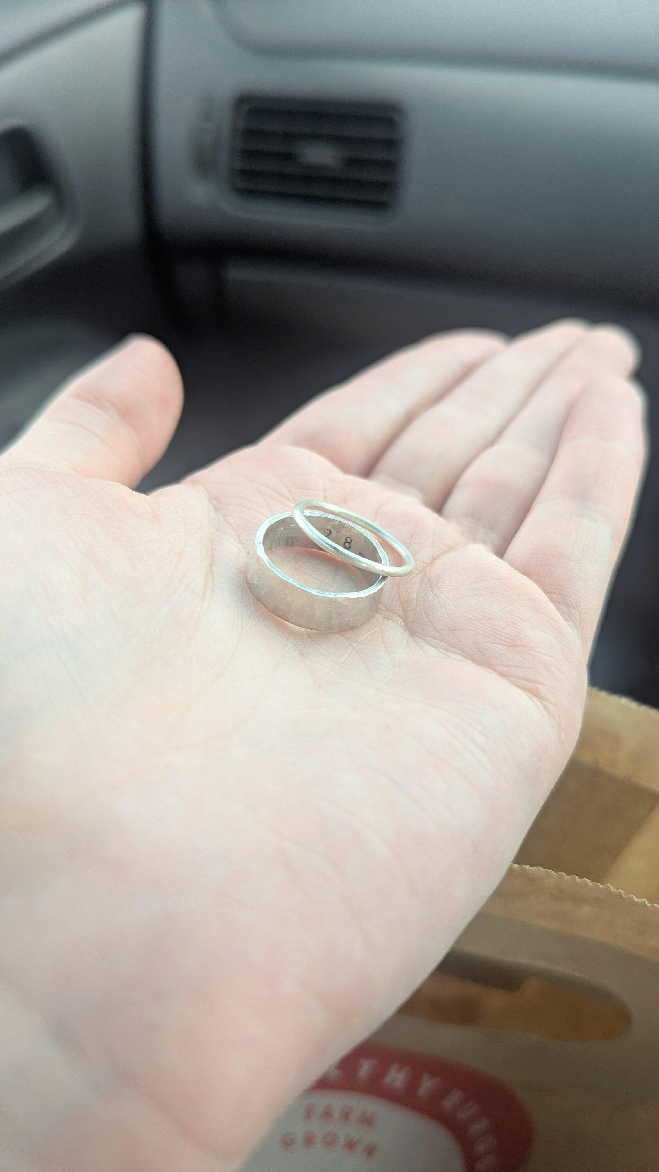 Everyone makes and leaves with two rings on the day.