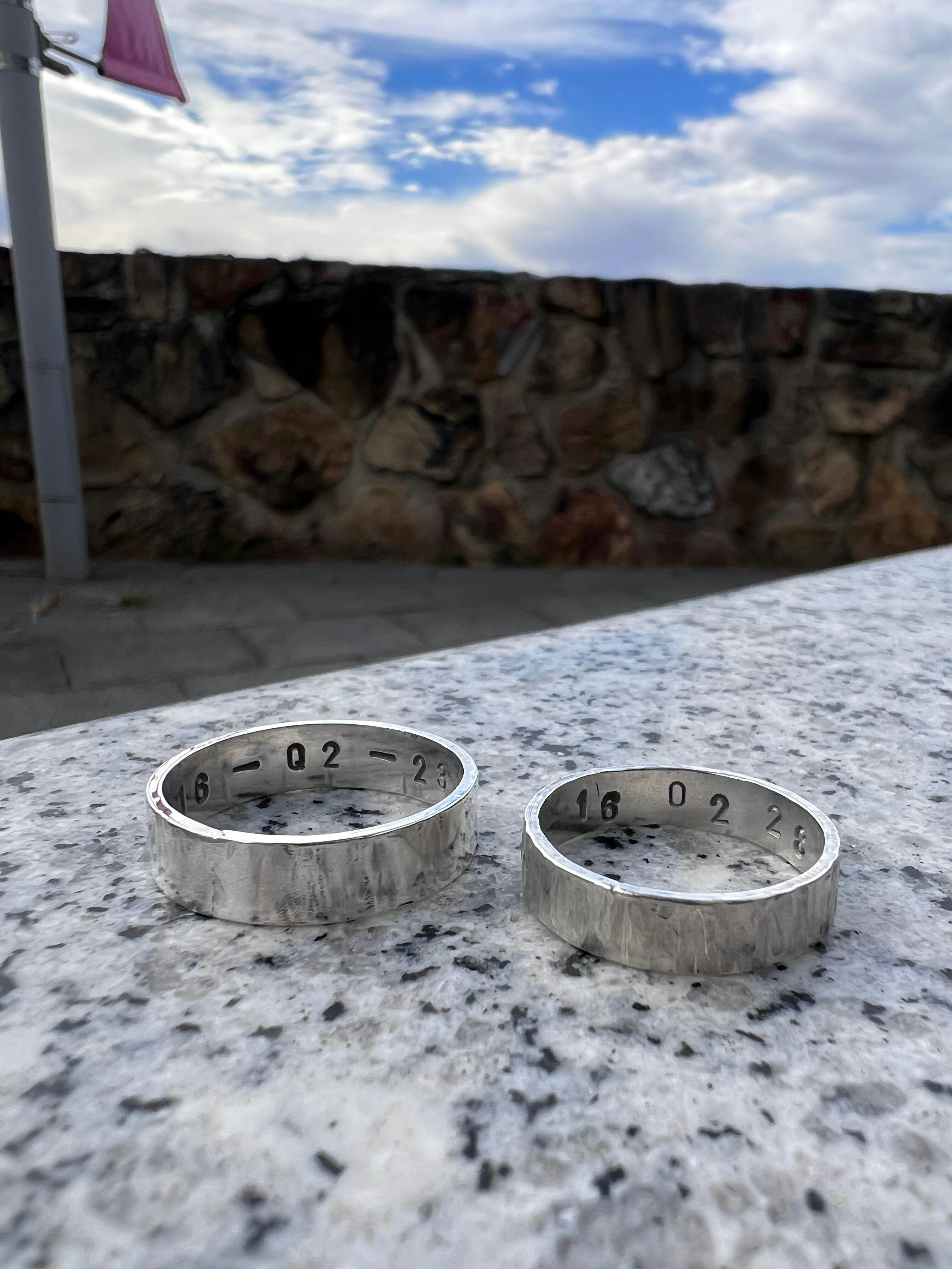 • Second Ring: A more advanced custom design - choose your own shape, texture and finish - and personalise your ring with lettering or numbers on the inside or outside. See some of our students' examples in our reviews below! If you choose to upgrade your second ring to gold, the material used in the second ring is paid for (by weight) on the day of your class depending on your selections.