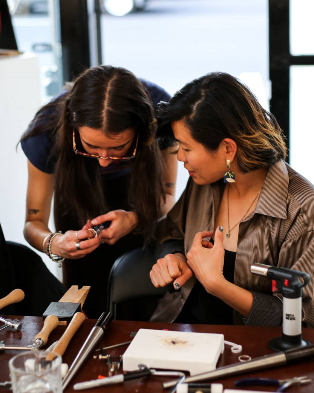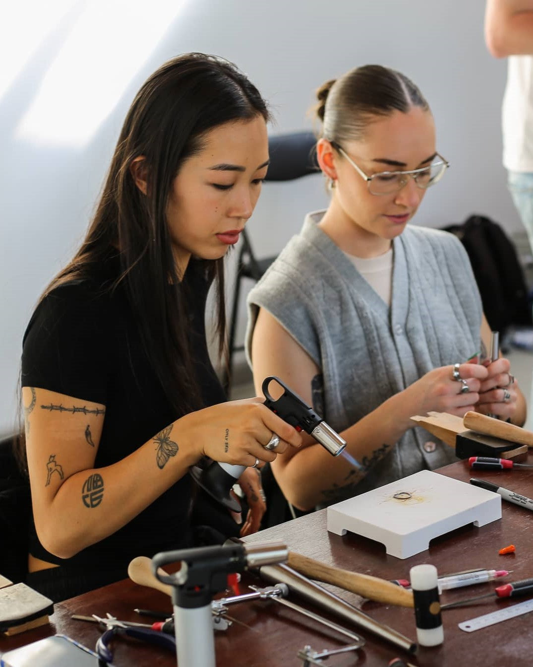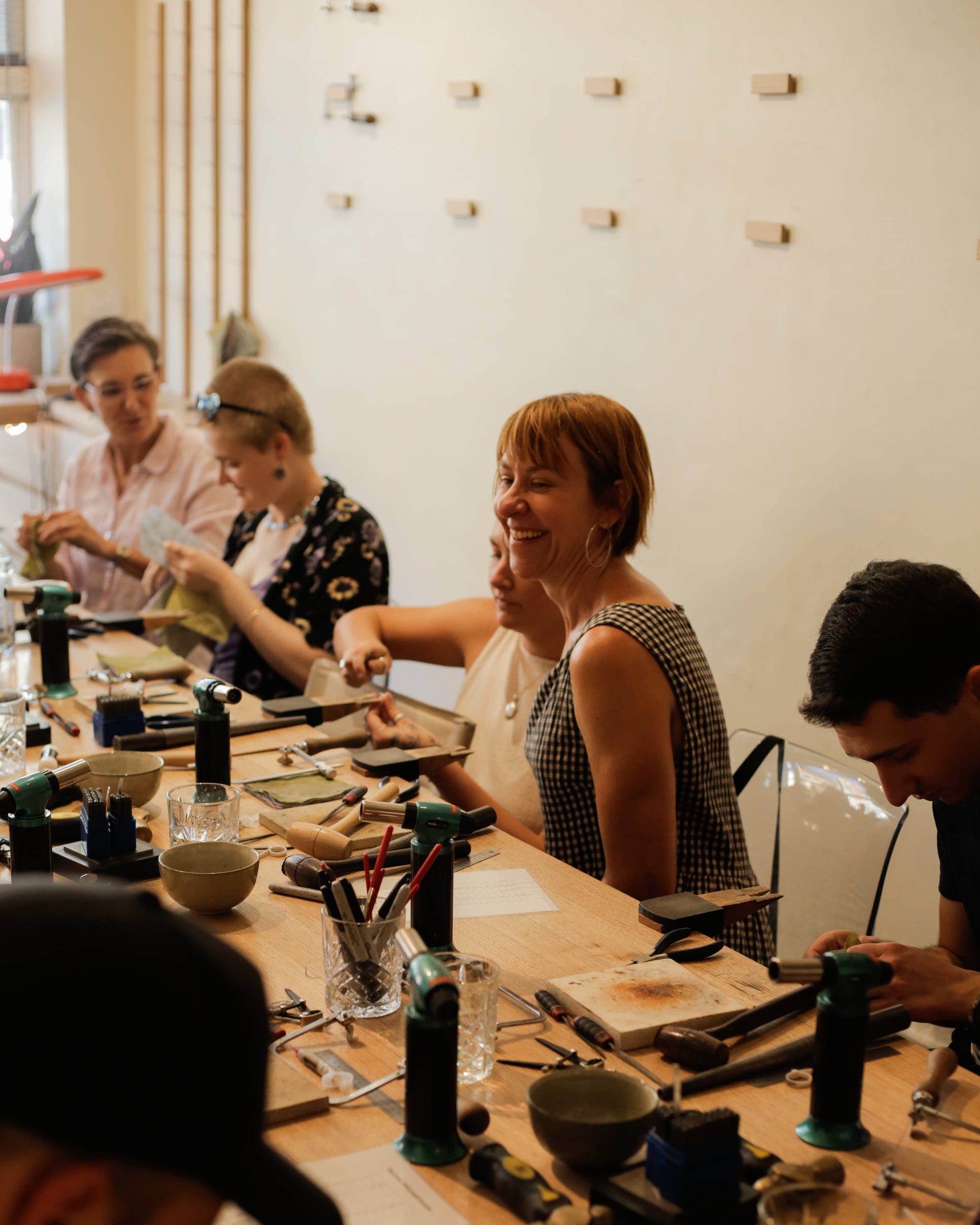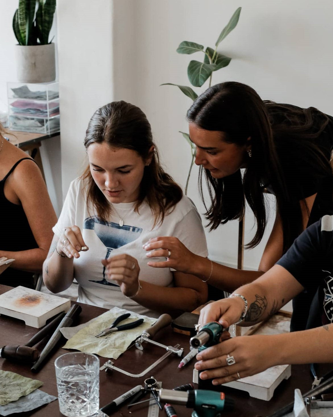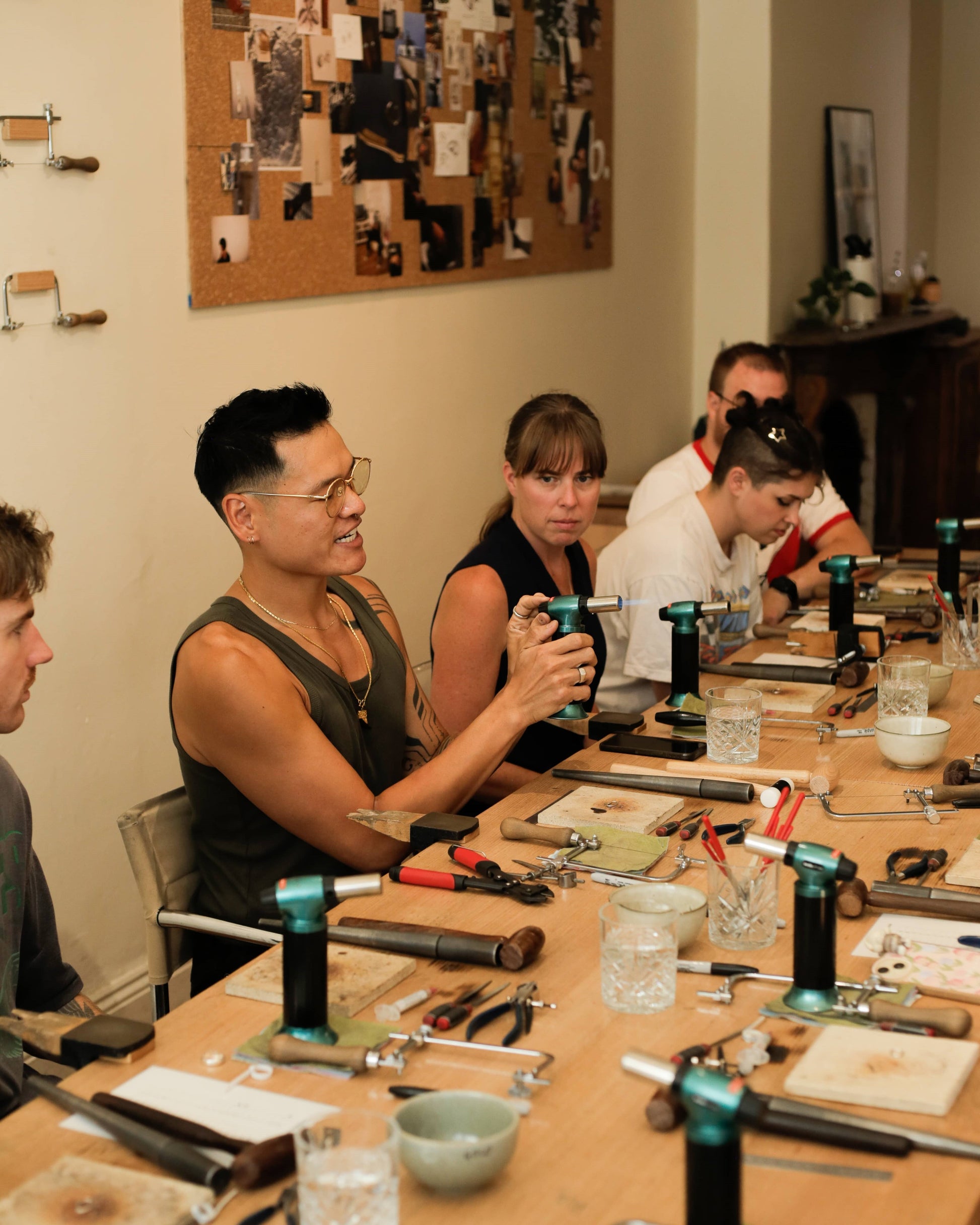 Join us at our flagship studio + store in Fitzroy for a hands-on jewellery making workshop where you'll learn the foundations of silversmithing or goldsmithing — no experience required. Over two fun and practical hours, our experienced jewellers will guide you step-by-step as you create two completely unique rings of your own.