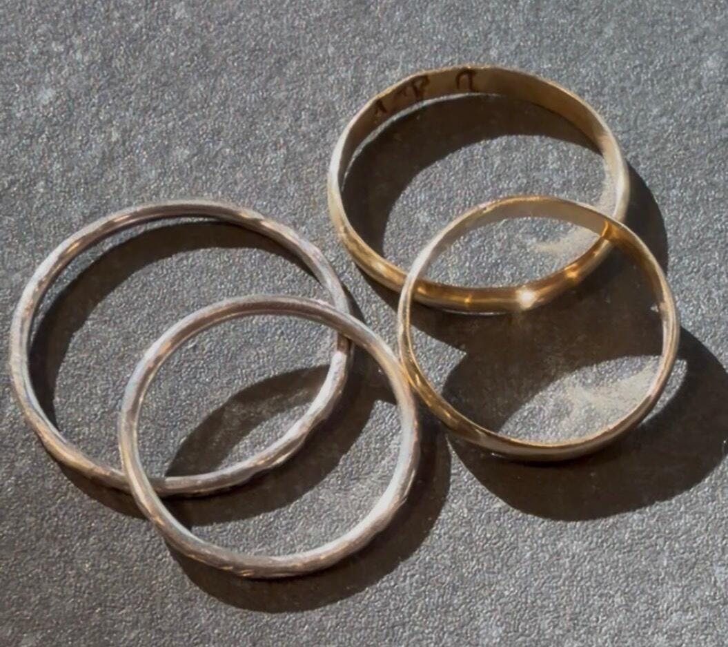 For people using gold - the solid gold required for the first ring is included. Participants will then choose their own desired size and style for their second solid gold ring and pay for this (by weight) on the day. The price of gold is $199 per gram - (and you'll get to choose the size, weight, and style prior to starting) — giving you control over the final look and price you pay. Most options range from around $250-500 depending on your selection.