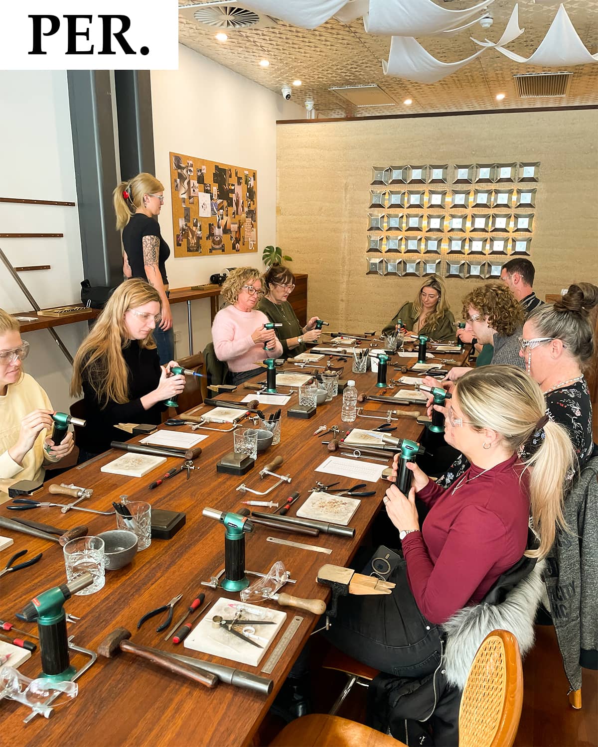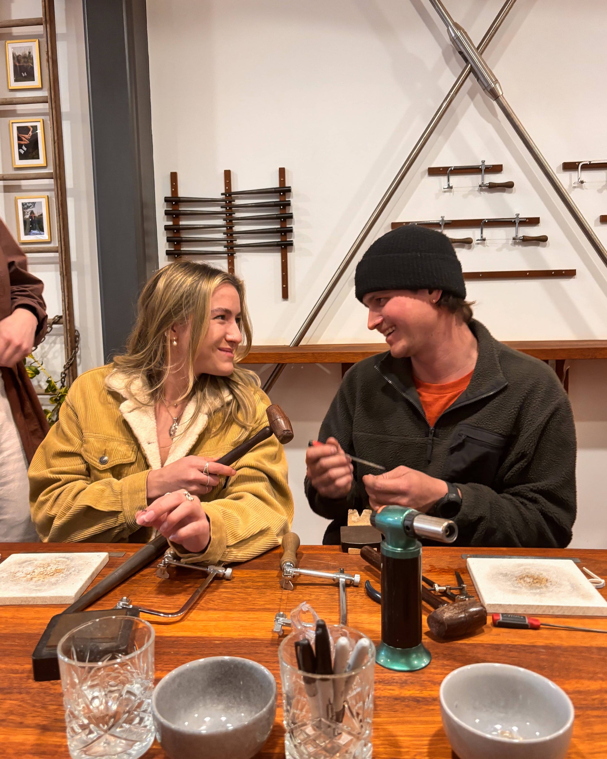 Join us at our flagship studio + store in Fremantle for a hands-on jewellery making workshop where you'll learn the foundations of silversmithing or goldsmithing — no experience required. Over two fun and practical hours, our experienced jewellers will guide you step-by-step as you create two completely unique rings of your own.