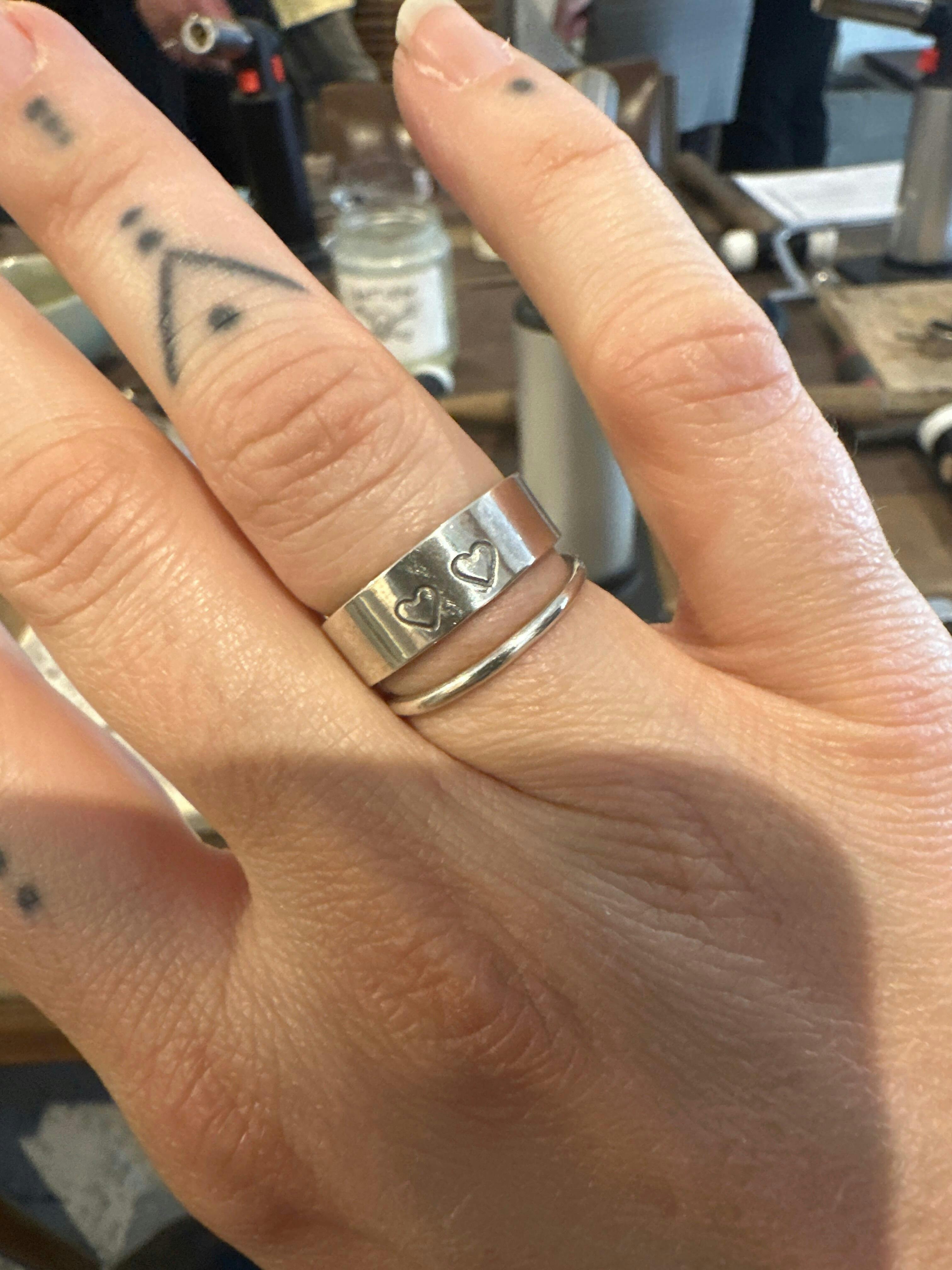 - First Ring: A stacker band completed step by step together- designed intentionally to ease you into the tools and techniques you’ll need for ringmaking.