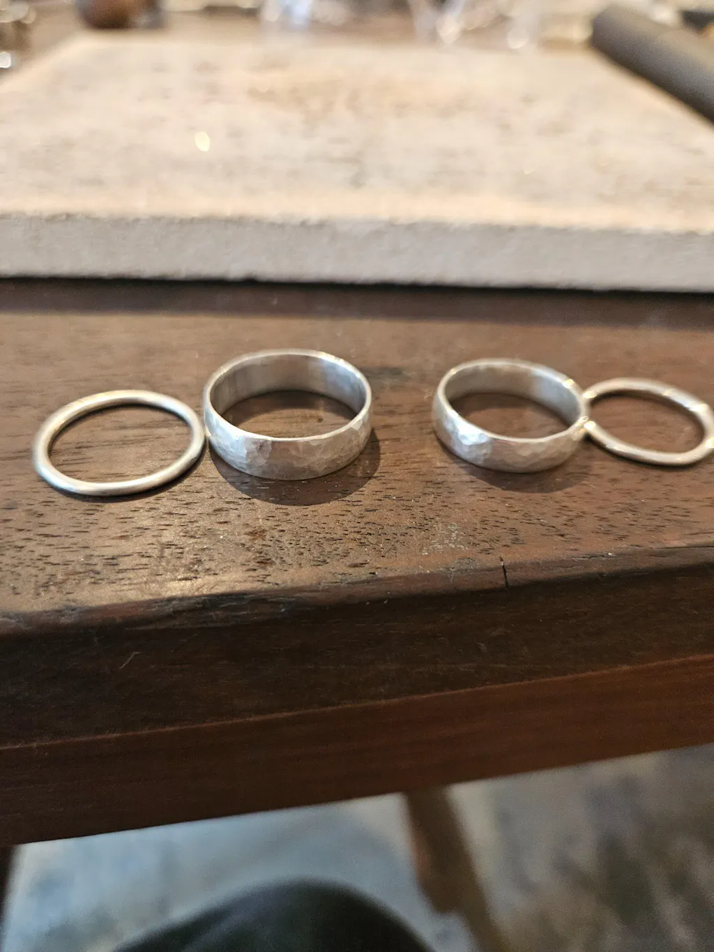 - First Ring: A stacker band completed step by step together - designed intentionally to ease you into the tools and techniques you’ll need for ringmaking. If you choose to upgrade your first ring to gold, the cost is $200 paid on the day of your class.