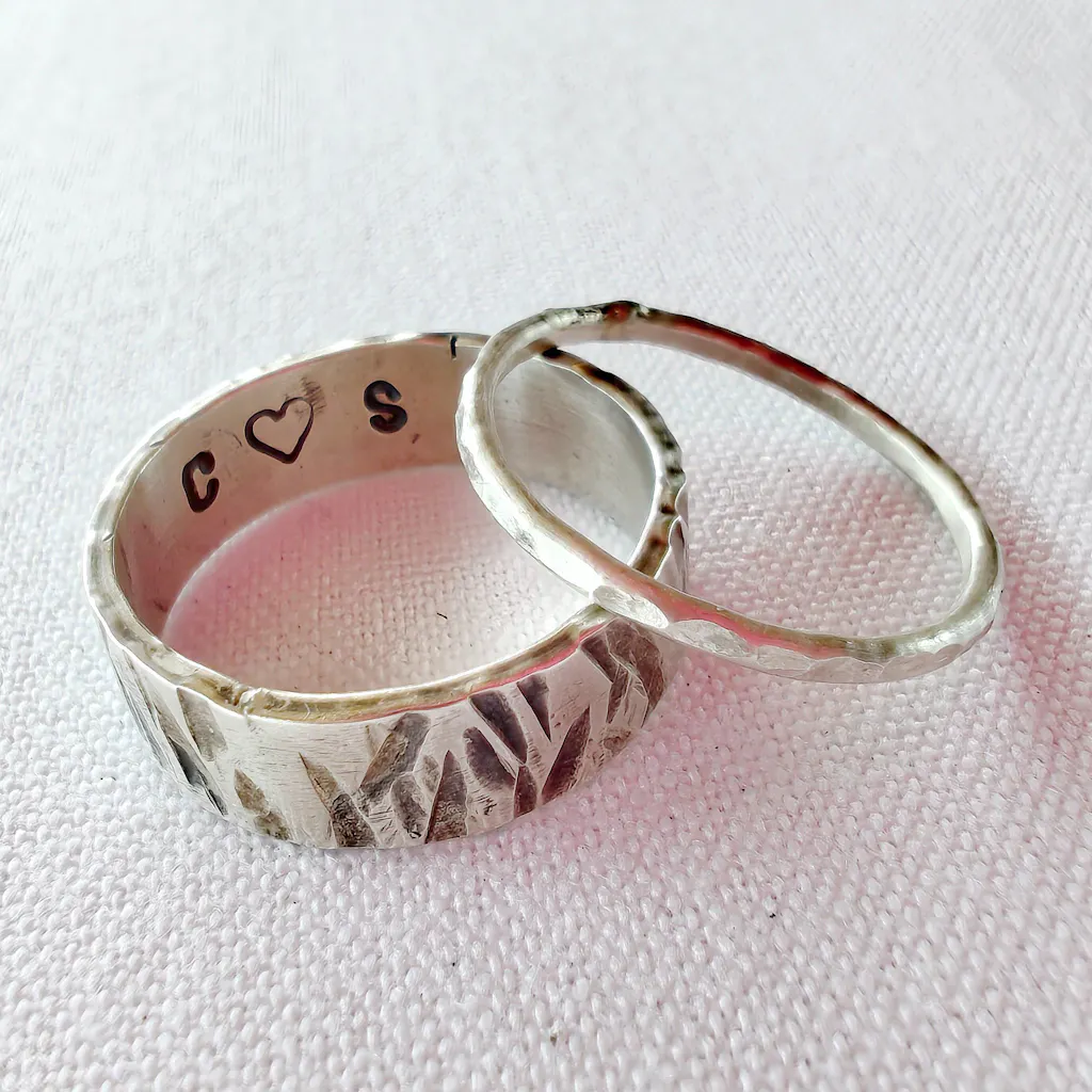 - Second Ring: A more advanced custom design - choose your own shape, texture and finish - and personalise your ring with lettering or numbers on the inside or outside. See some of our students' examples in our reviews below! If you choose to upgrade your second ring to gold, the material used in the second ring is paid for (by weight) on the day of your class depending on your selections.